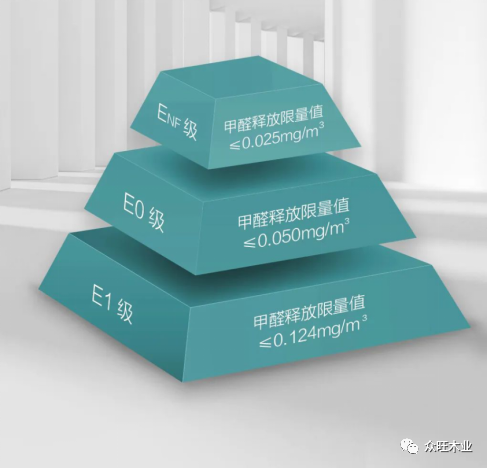 目前有三個等級,分別為E1級、E0級、ENF級三個標準。E1級甲醛釋放限量≤0.124mg/3,E0級甲醛釋放限量≤0.050mg/m3,ENF級甲醛釋放限量≤0.025mg/m3。以前行業內大家經常說沒有E0級,其實以前的E0級都是企業自己的標準,只要在企業標準公共信息服務平臺登記通過,就擁有企業標準的E0級。而現在隨著GB/T36900-2021文件正式實施,新國標E0級就此正式產生,以后不要再說國標沒有E0級了。